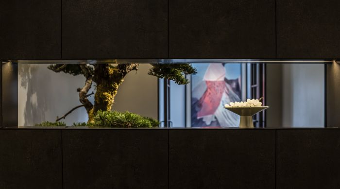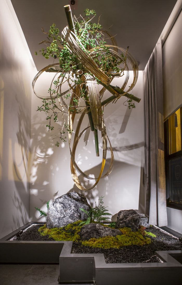 造景亦是这样的存在,古典艺术与潮流在此完美融合。凌厉而又不失稳固的交叉竹节与流动闭合的环