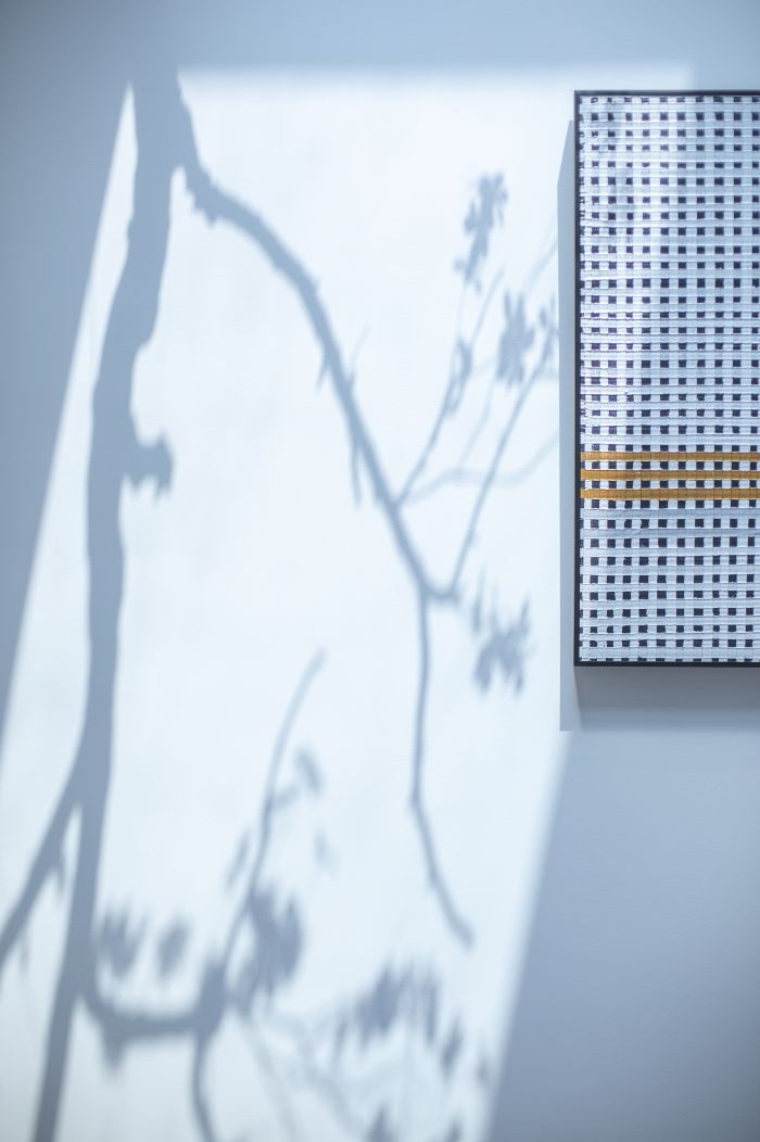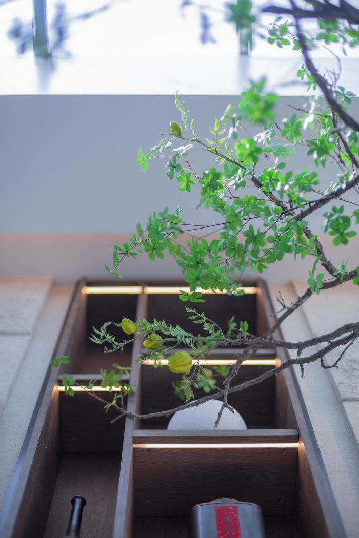 树冠剪影摇曳在纯色的背景墙上,映衬出自然的明暗线条,提升空间的层次感。
