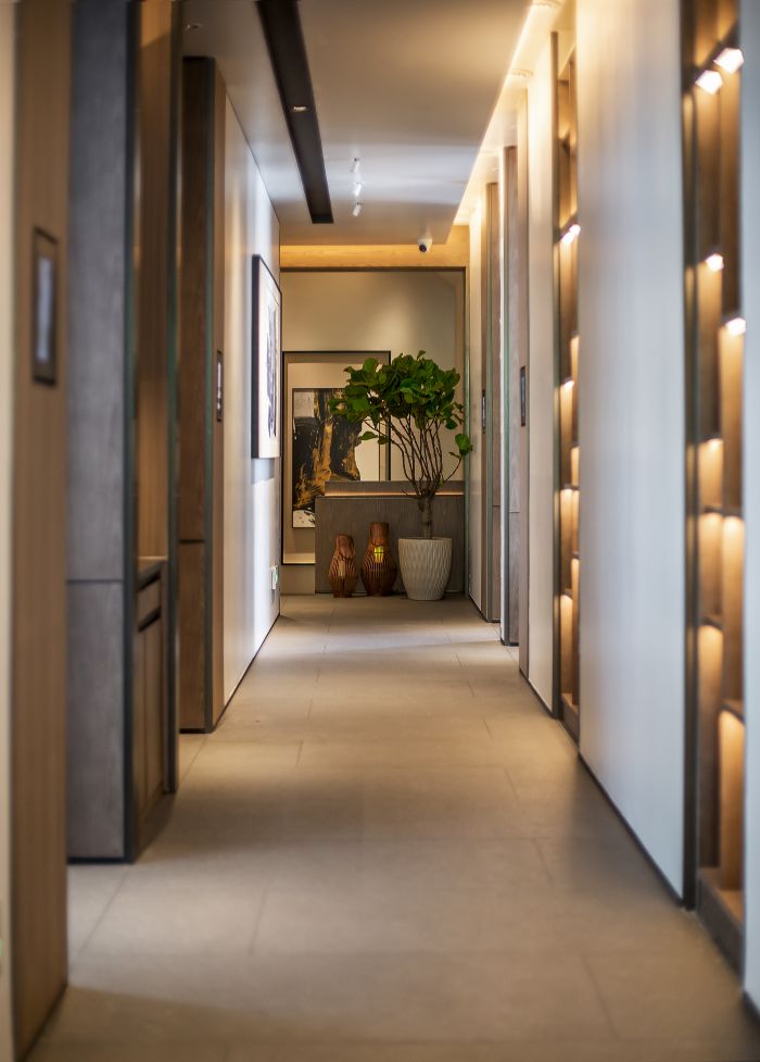 装饰灯点缀其间,赋予空间丰富的层次感。得益于这样的结构,于室内行走时仿佛突破了室内空间层