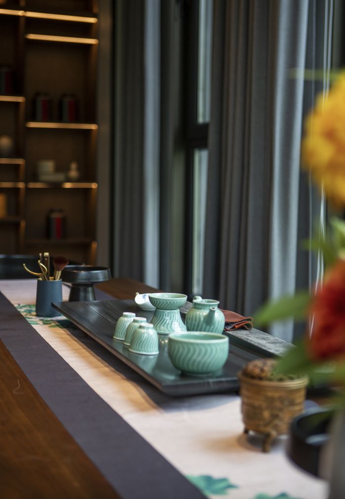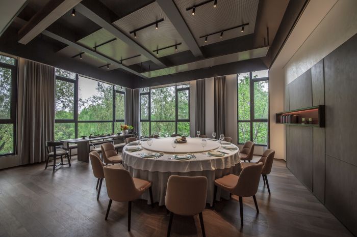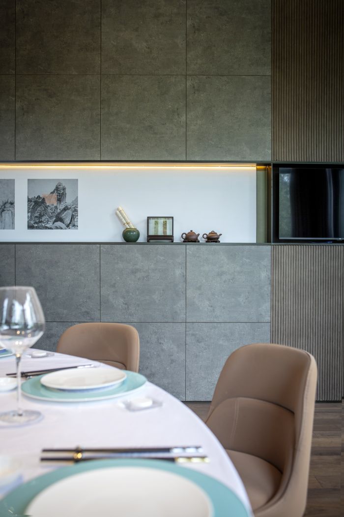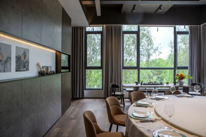 犹如将充满烟火气息的酒香、茶香、菜香,与抽象的、概念性的艺术风格相互碰撞,形成了别具一格的设计风格与就餐体验。